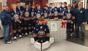 Port Credit Hockey’s U18 team, PC115, has set up a donation box to support Toy Mountain.